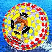 Walk on Water! Have a blast in the Nuclear Globe and walk on water! Climb inside this giant 6 Foot sphere and rock-and-roll across the water. The cup-like construction on the outer surface helps grip and paddle your way through the water as you spin the globe. With additionally purchased globes you and your friends can engage in a Nuclear Face-Off as you and an opponent compete to bump and bounce each other into submission. Prepare for combat!
