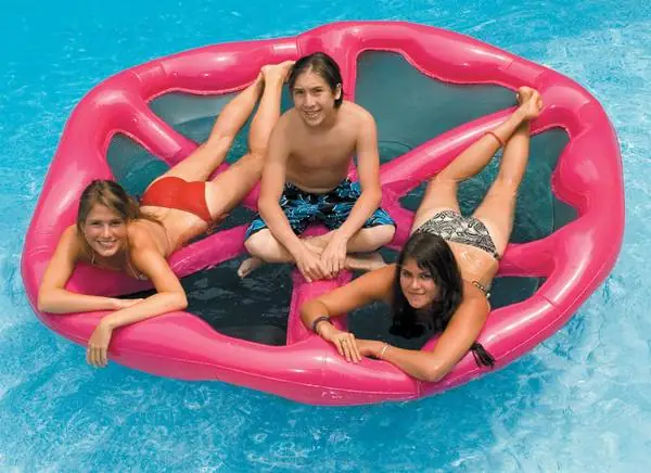 Giant pizza float is sure to entertain the kids and be a hit at pool parties. The pizza slices are actual mesh inserts for easy cooling off. Made of heavy gauge PVC.