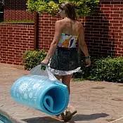 The Tote N Float is durable, easy to clean, long lasting and comfortable. It has a cooling ripple texture and a sparkling finish. The Tote N Float is constructed of High-quality glossy vinyl-coated foam for long life and durability. The Softie is approximately 70"L x 26"W x 1-3/4" Thick. It is available in Aquamarine, Kiwi and Bronze. The Tote N Float also comes with a carrying case with colorful designer graphics.