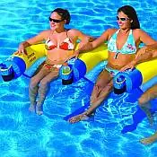 Hook up with the all new U-Ride lounges . The U-Rides are designed for one to four person parties and can be joined together for even more people to enjoy. Hook up with your friends by linking together multiple U-Rides to form a party chain, or flip the U-Ride over and have a custom belly board to splash up some fun! Kick back and relax at the lake or pool in the comfort mesh seating while utilizing the built in cup holders to holster your favorite beverage. Whatever your mood is, we are hooking you up with the all new U-Rides!