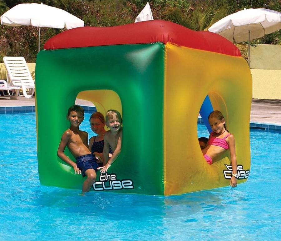 The totally cool Swimming Pool Cube Pool Float will keep the kids entertained for hours. Its big 60" square walls and holes make it the ultimate floating fort. It has an inflatable bottom with a drain so it can be used outside the pool as its own kiddie pool. Rugged heavy gauge inflatable will hold up during endless hours of horseplay.